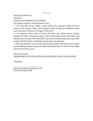 Doc Contoh Surat Sokongan Khamarudin Ismail Academia Edu